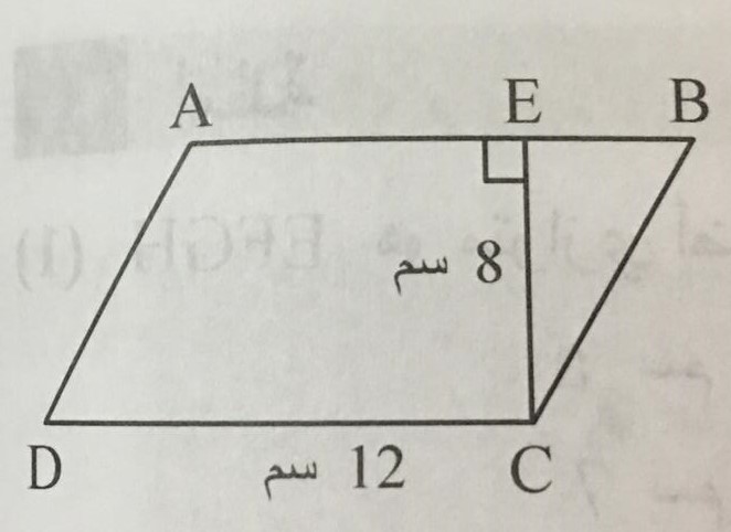 لذا فمساحة متوازي الاضلاع هي 96 سم ، وفق الحساب