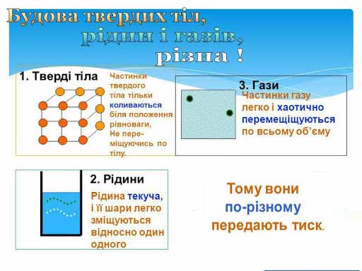 Через свою плинність рідина здатна передавати тиск по всьому об’єму посудини, в якій міститься. Зробимо голкою в поліетиленовому пакеті невеликі отвори, наберемо в пакет воду і зав’яжемо. Натиснемо на пакет – вода з пакета буде виливатися з усіх отворів.