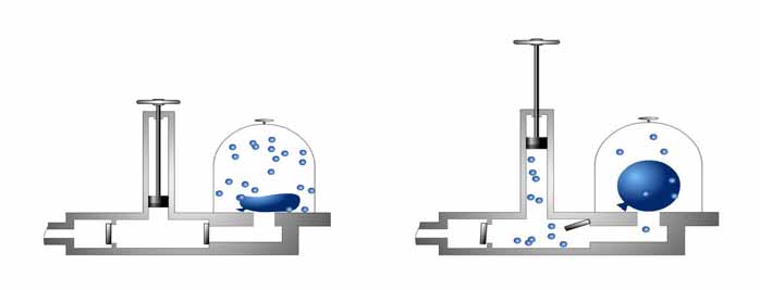 Повітря всередині й зовні кульки створює тиск відповідно на внутрішню і зовнішню поверхні гумової плівки. Якщо ці тиски є однаковими, гумова плівка не розтягується. А от якщо тиск усередині кульки стає більшим від зовнішнього тиску, то кулька збільшує свій об’єм.