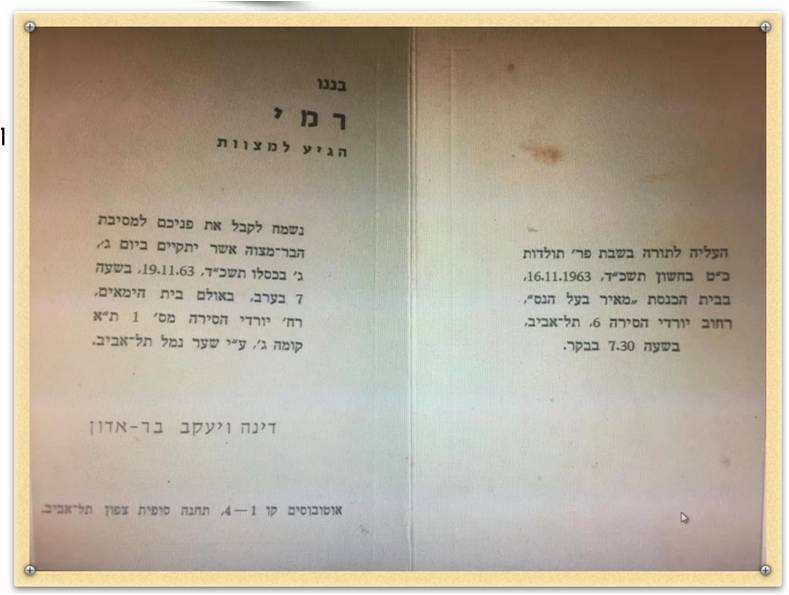 בר מצוה. איתי בן רם ומלנה ז’אן הי”ו