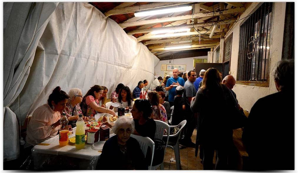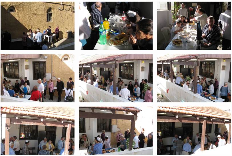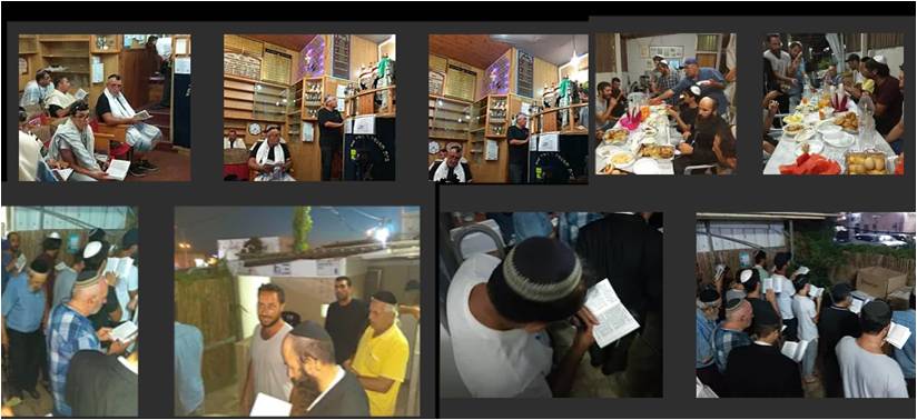 בית הכנסת נוקה וקורצף משאריות ארבעת המינים וסעודות המצוה שערכנו בחג, אולם התפילה הותאם לטקס ובמרכז עמד כיסא אליהו הנביא.
