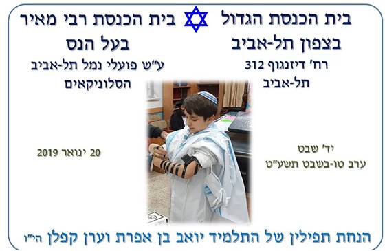 בר מצוה. יעקב בן דוד ורחל טופלין. הנחת תפילין ביום ה’ יא’ תשרי תשע”ט