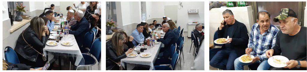 בתום התפילה נערכה סעודת מצווה סביב שולחנות עם מזון משובח וכמובן כולם