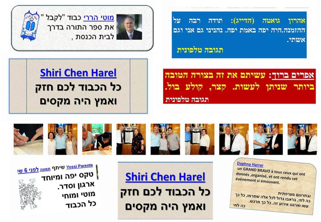 הסבתא נצחיה נשאה דברי ברכה מרגשים ונציג ביה”כ מרדכי אבולעפיה נשא גם הוא דברי ברכה וציין את ההיסטוריה של ביה”כ והעלה דברי אקטואליה אודות האירועים המשפטיים שהביאונו עד הלום.