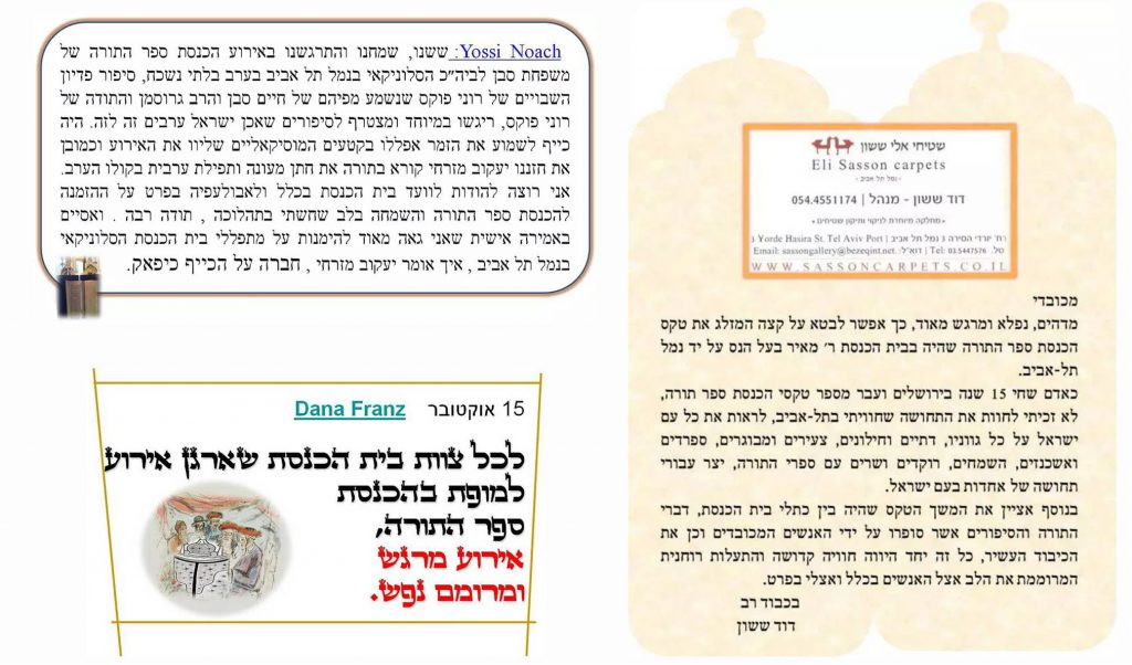 המעידות יותר מכל על קשר זה, תשמישי קדושה, ספרי היסטוריה ועדות חיה של מייסדי בית הכנסת. מצגת מרגשת זו גרמה להתרגשות רבה וכמו קודמותיה גרמה להתרגשות ולדמעות שזלגו מעיני הנוכחים.