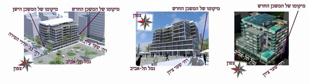ההליכים המשפטיים התנהלו בבית המשפט השלום בהרצליה ולאחר דין ודברים מינה כב’ השופט יעקב שקד את האדריכלית רבקה כרמי על מנת שתביא לפשרה בין הצדדים בהיבטים השונים. נערכו פגישות רבות במשרדה של האדריכלית ובמשרדם של היזמים. היו אלה דיונים קשים ביותר ולעיתים הגיעו הדברים לידי צעקות רמות אולם בסופו של דבר הושגה פשרה שקבלה תוקף של פסיקת בית המשפט השלום. במסגרת הפשרה שהושגה, יעבור בית הכנסת בשכירות למשכנו הזמני בביה”כ הגדול ברחוב דיזנגוף 312 למשך 3 שנים בתוספת אופציה לשנתיים נוספות. בפרק זמן זה יבנו היזמים מבנה מפואר שיכלול מכלול מסחרי, שתי קומות של מלון ו 6 קומות של דירות יוקרה בפרוייקט הנקרא Port TLV. בתום הבניה יקבל בית הכנסת מבנה בן כ 130 מ”ר עם כל הפונקציות הנדרשות אשר יירשם ע”ש העמותה לשימוש לצמיתות ללא תמורה.