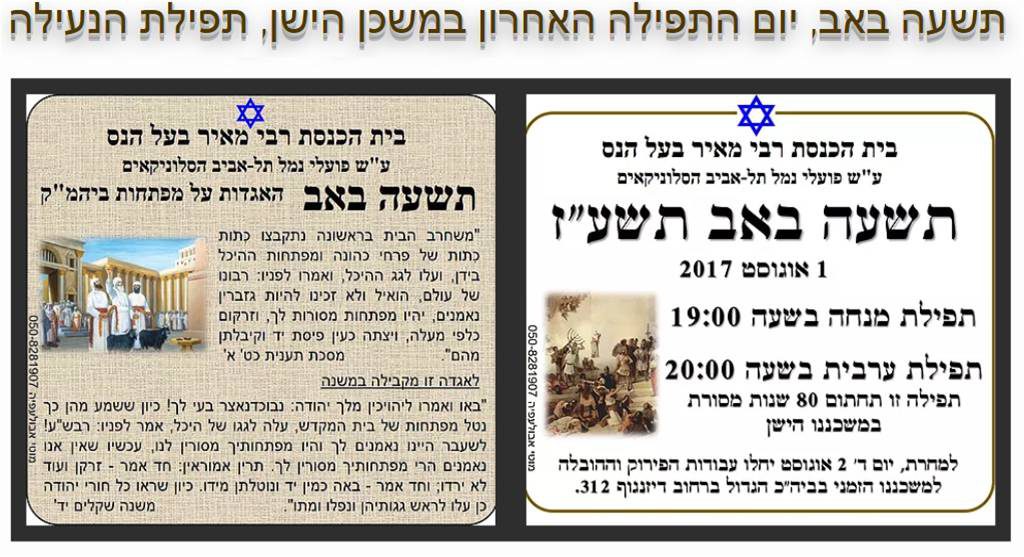 מתחדשים ויוצאים לדרך חדשה – תשעה באב תשע”ז/התפילה האחרונה
