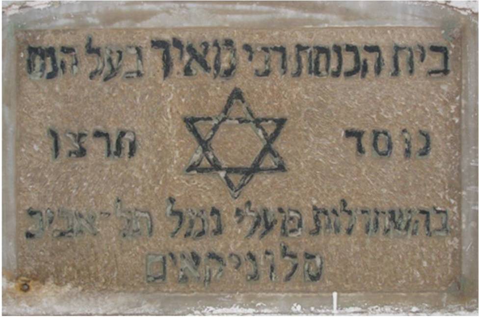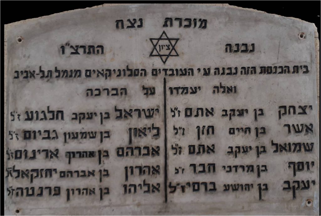 לזכר מייסדי בית הכנסת הסלוניקאי ליד נמל תל-אביב