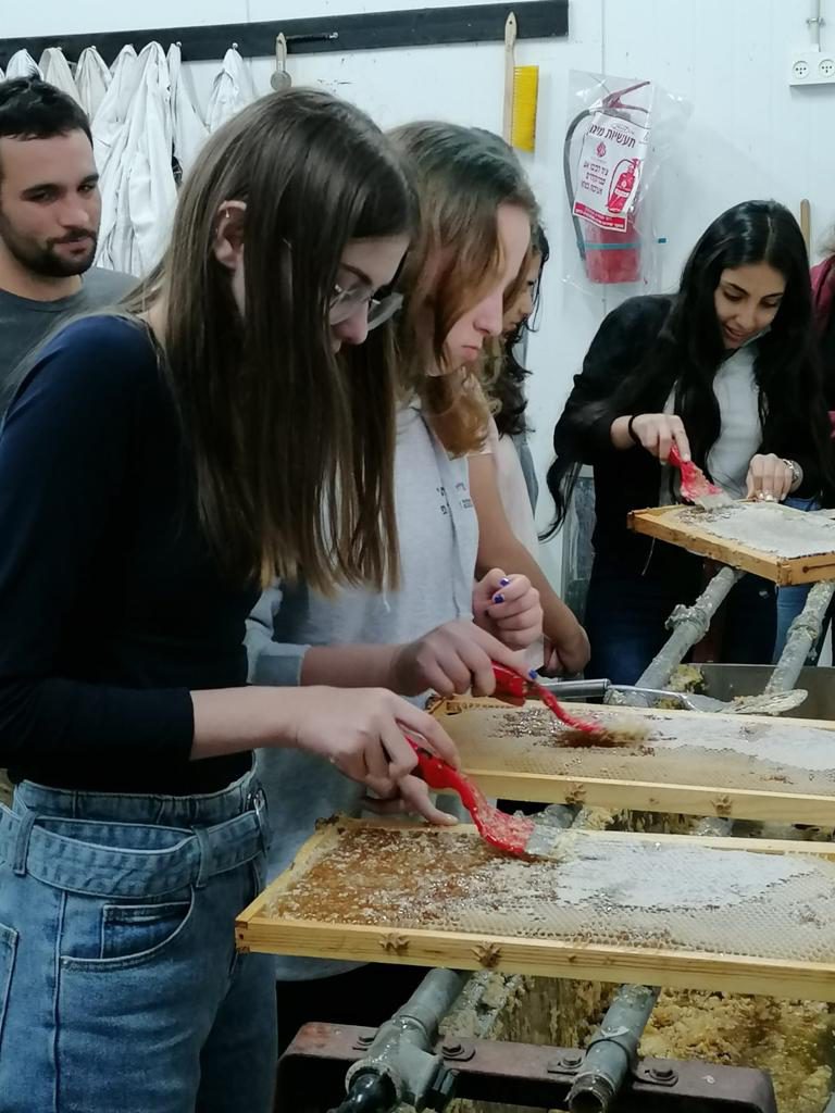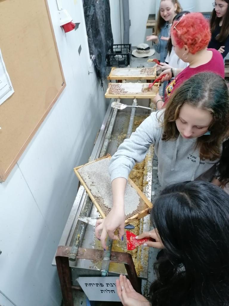 Once in a while there is a day calledFarm Day“. On this day we did something new. We made a honeycomb. In the following passage we will explain how we did it, step by step. First, a teacher opened the hive. Then ,We took a net and peeled of the honey wax from it. After that, we rolled it and put it in a jar. In the end, we put a sticker of our School logo on the jar.