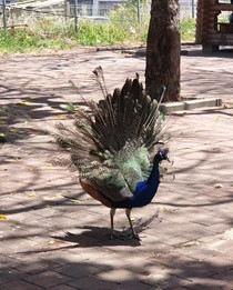 In addition, visitors and students can pet the cats and take pictures of the peacocks.