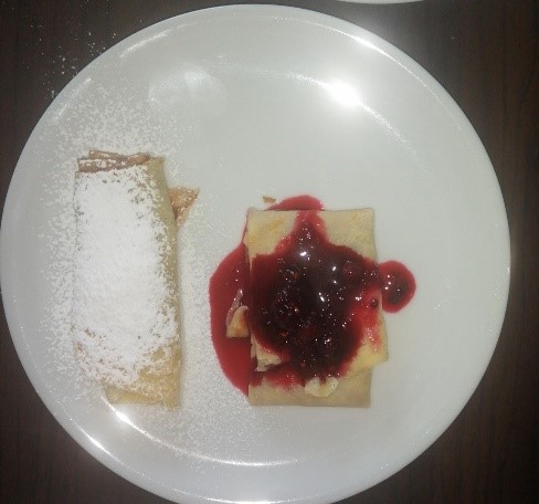 8. A questo punto arrotoliamo la crepes su se stessa per poi servirla con una spolverata di zucchero a velo.