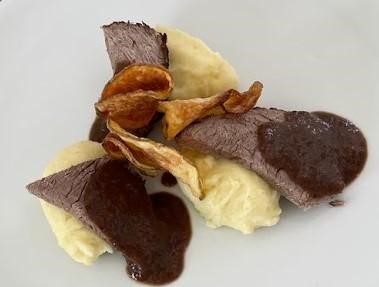 8. Frullate tutto il resto, dopo aver tolto i rametti di rosmarino, e servite la carne con la salsa ottenuta.