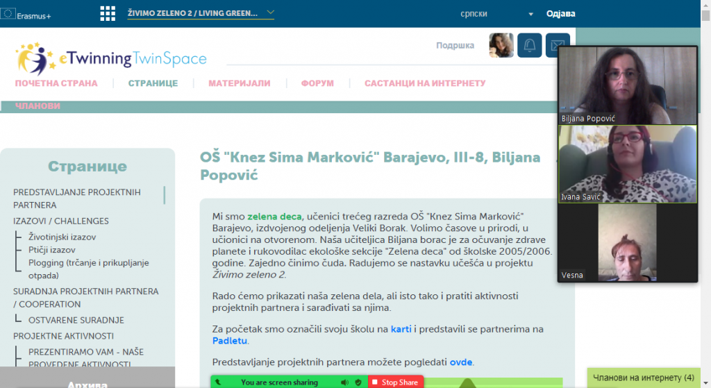 Uvodna videokonferencija projekta “Živimo zeleno 2” održana je 9. septembra 2021. godine u okviru koje su autorke projekta predstavile aktivnosti i prezentovale način organizovanja TwinSpace-a unutar projekta.