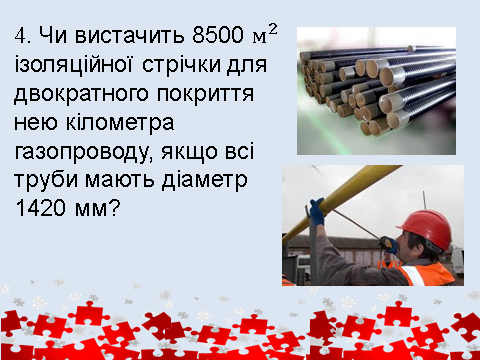 Чи вистачить 8500 м2 ізоляційної стрічки для двократного покриття нею кілометра газопроводу, якщо всі труби мають діаметр 1420 мм?