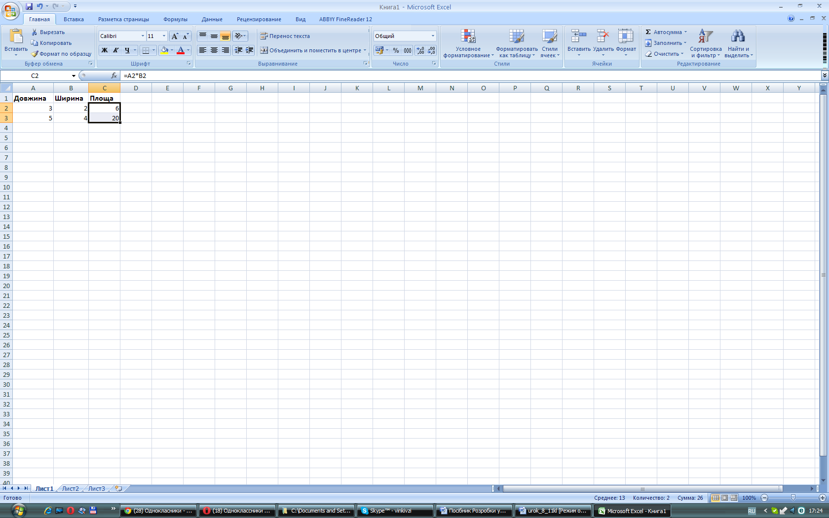 Якщо ширина стовпця таблиці замала для відображення введеного числа, то у клітинці замість числа буде відображено ##### (рис.2). При цьому  в Рядку формул дані відображаються повністю.