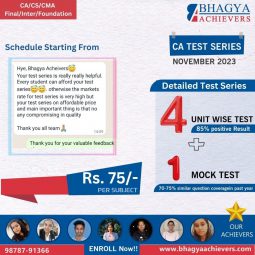 For the CA Intermediate Mock Test Series and CA Inter Test Series for November 2023, Bhagya Achievers provides a structured approach, ensuring you cover every topic thoroughly.