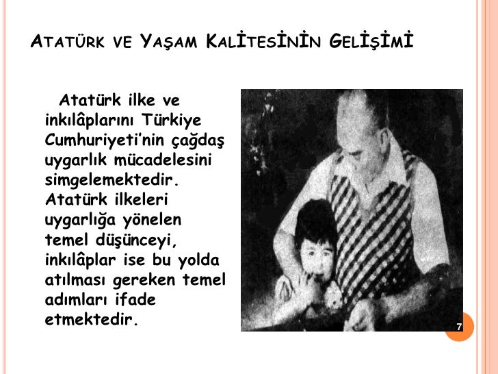 ATATÜRK VE YAŞAM KALİTESİNİN GELİŞİMİ Atatürk ilke ve inkılâplarını Türkiye Cumhuriyeti’nin çağdaş uygarlık mücadelesini simgelemektedir. Atatürk ilkeleri uygarlığa yönlendirmeli temel düşünceyi, mürekkep püskürtmeli inç temel adımları ifade eder.