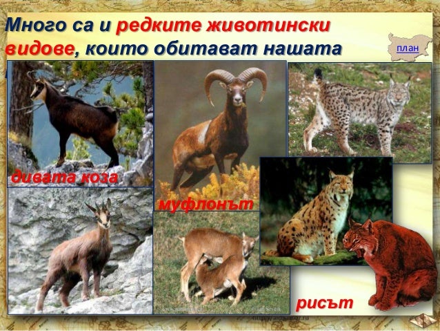 24. 27. Много са и редките животински видове, които обитават нашата природа. дивата коза муфлонът рисът план