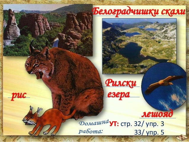 34. 37. Белоградчишки скали рис Рилски езера лешояд УТ: стр. 32/ упр. 3 33/ упр. 5