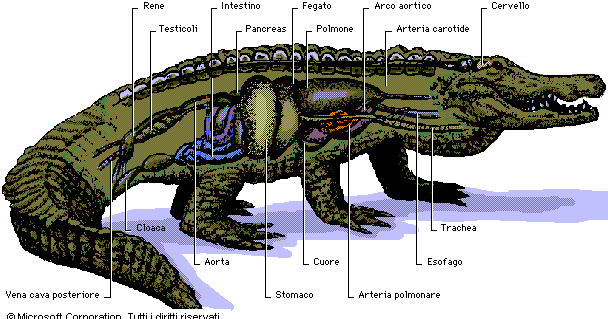 L’apparato digerente inizia con la bocca e termina nella cloaca, che ha un’apertura esterna chiamata ano.