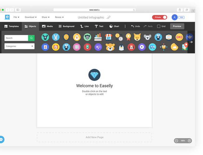 - Виберіть кнопку Objects ( англ. Objects — об`єкти), у списку категорій виберіть категорію avatar (англ. avatar— аватар, графічне подання людини), зі списку картинок, що відкрився, перетягніть на інфографіку ту, що відповідає зразку, розмістіть її в потрібному місці, виділіть її, змініть розміри відповідно до зразка.