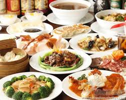 Çin yemekleri: Çiğ istiridye, üzüm şişleri, dimsum, pekin ördeği, mürekkep balığı, civciv kızartması, ıstakoz, deniz yosunu, karışık deniz ürünleri yerler.
