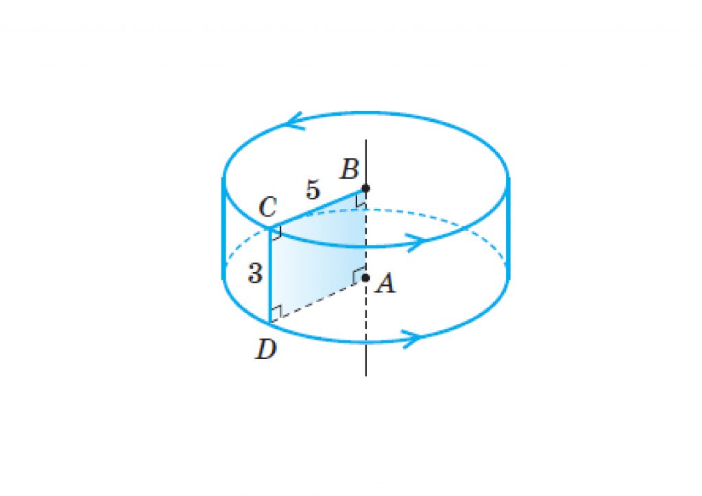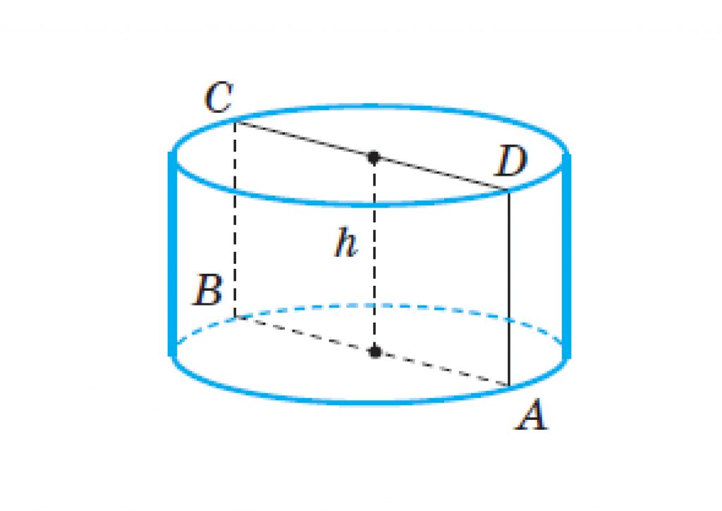 На малюнку зображено циліндр, радіус основи якого 6, а висота – h. Чотирикутник ABCD – осьовий переріз цього циліндра. До кожного початку речення (1-4) доберіть його закінчення (А-Д) так, щоб утворилося правильне твердження.