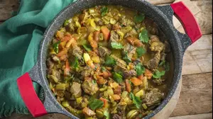 שאווייה עשויה קוביות בשר מבושלות ומטוגנות עם בצל ותבלינים
