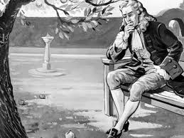 Това станало при падането на една ябълка, докато той се бил замислил нещо. Запитал се защо ябълката пада винаги перпендикулярно на земята, а не се отклонява настрани или нагоре, а винаги сочи центъра на Земята. Историята се среща и при други автори, но днес се счита, че вероятно е измислена от самия Нютон по-късно, за да покаже как и най-ежедневните неща са го вдъхновявали.