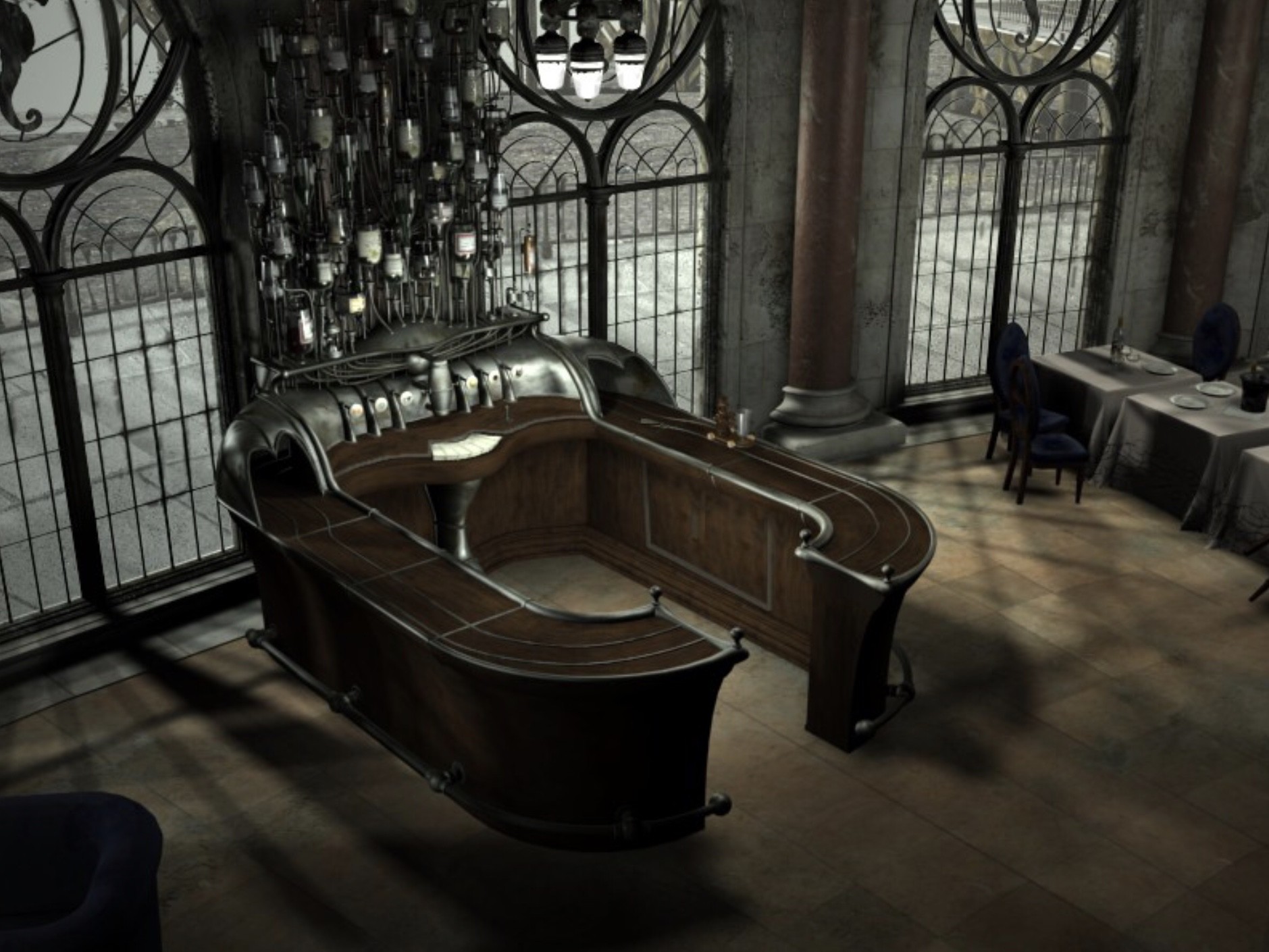 После того, как коктейль появится на стойке, поставьте бокал из инвентаря справа от Елены. Когда мадам Романская закончит упражняться в вокале, поговорите с ней. Возвращайтесь в дирижабль.