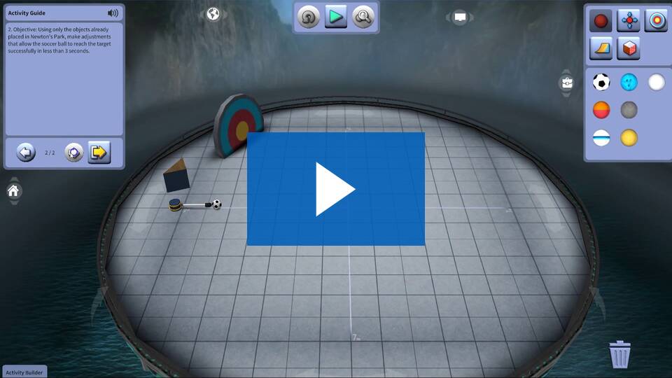 Creating and editing activities in zSpace Newton’s Park, Studio, Euclid’s Shapes, and Franklin’s Lab is done through Activity Builder. You can change anything we’ve written or create your own activities.