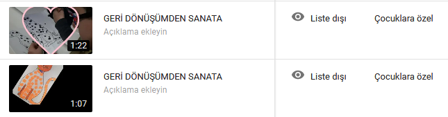Youtube a öğrenci çalışmalarının videolarını yüklerken çocuklara özel olduğunu belirtip yüklemeler yapıldı.