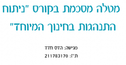 עבודה מסכמת בקורס ניתוח התנהגות- הדס חדד