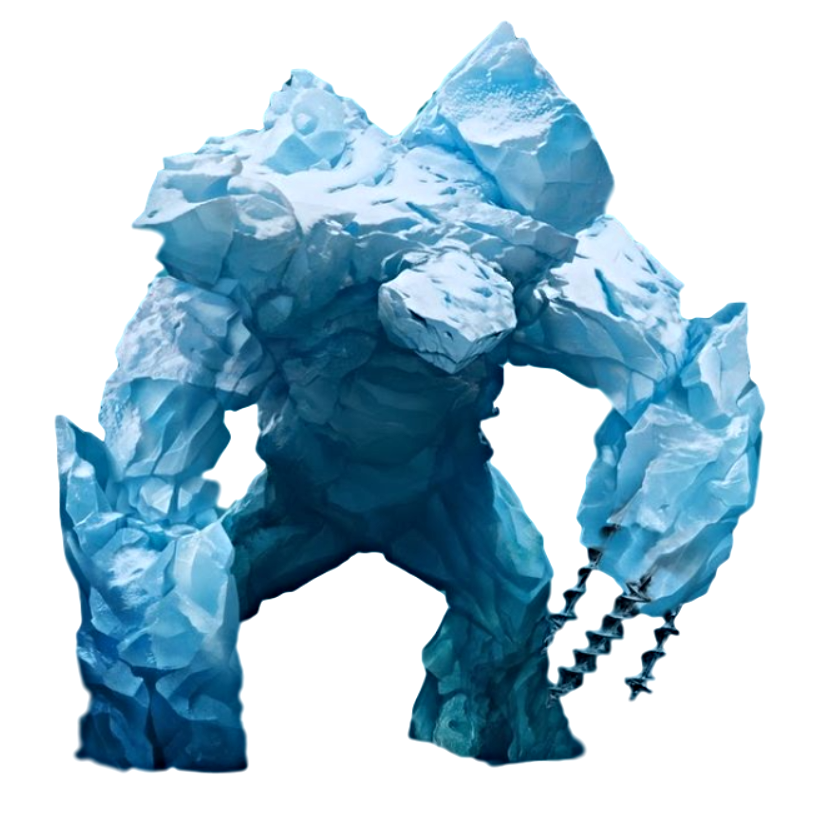 La creatura era di ghiaccio , al posto delle dita aveva degli artigli di ferro ed era anche molto arrabbiato.