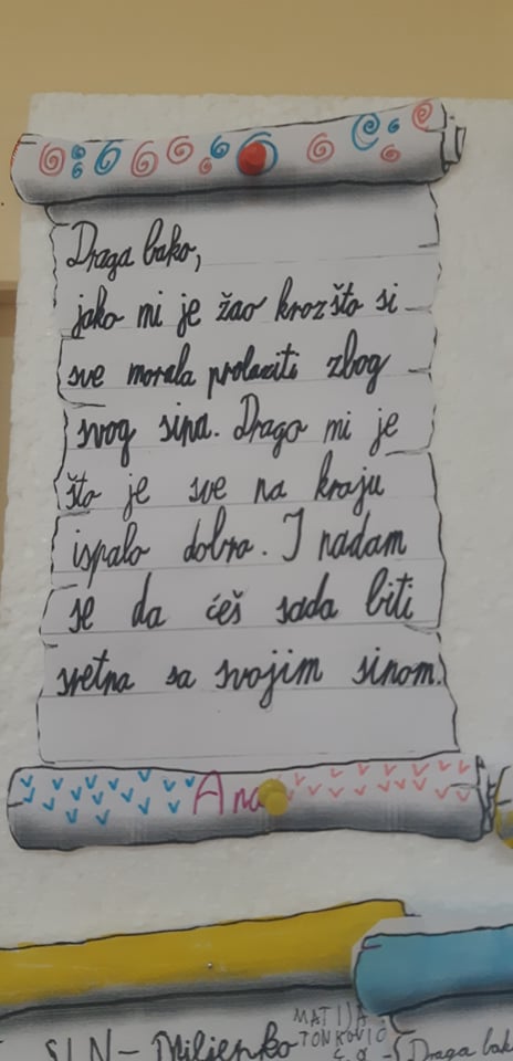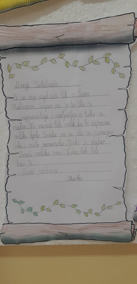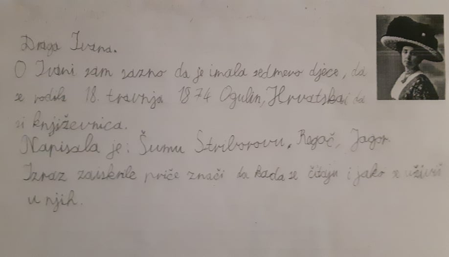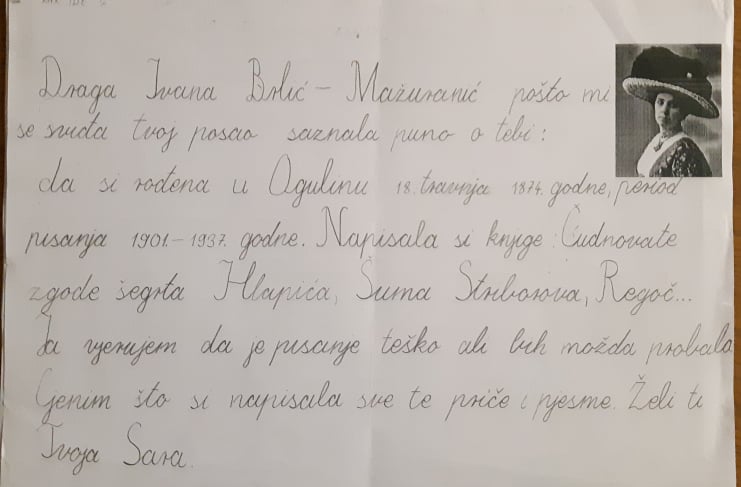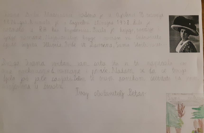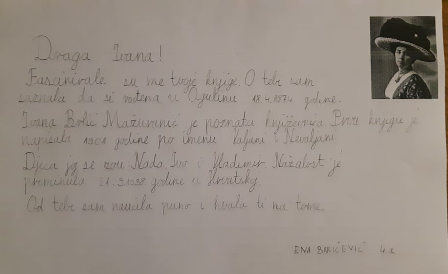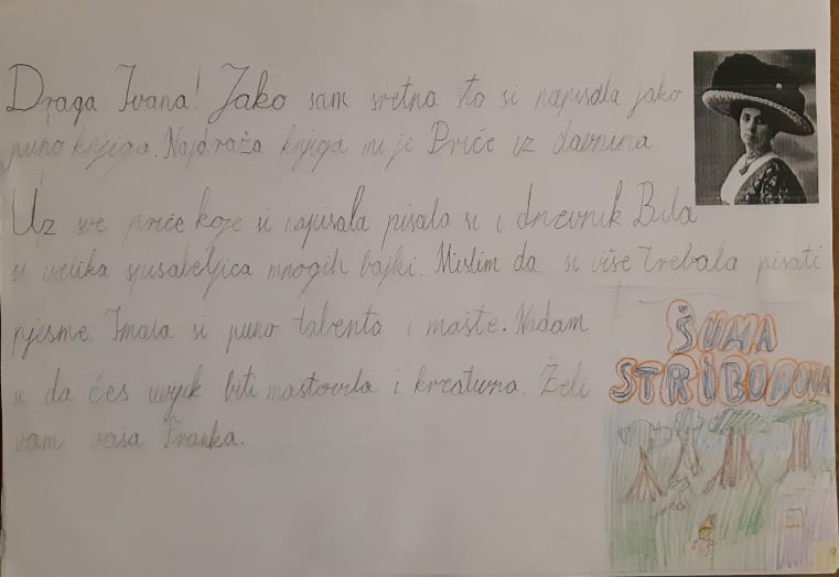 To smi mi! Idemo u 4.a razred. Naša učiteljica zove se Ljiljana Kubaša. Nakon proučavanja života i rada književnice Ivane Brlić Mažuranić, odlučili smo otputovati u prošlost. Napisati joj pismo i njenim likovima iz bajke.