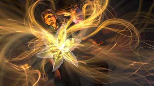 רפונזל מנסה לרפא את יוג’ין הגוסס, שבנשימתו האחרונה מצהיר על אהבתו אליה. רפונזל בוכה. דמעה אחת, המלאה בכוחותיה, נוחתת על לחיו ומשיבה אותו לחיים.